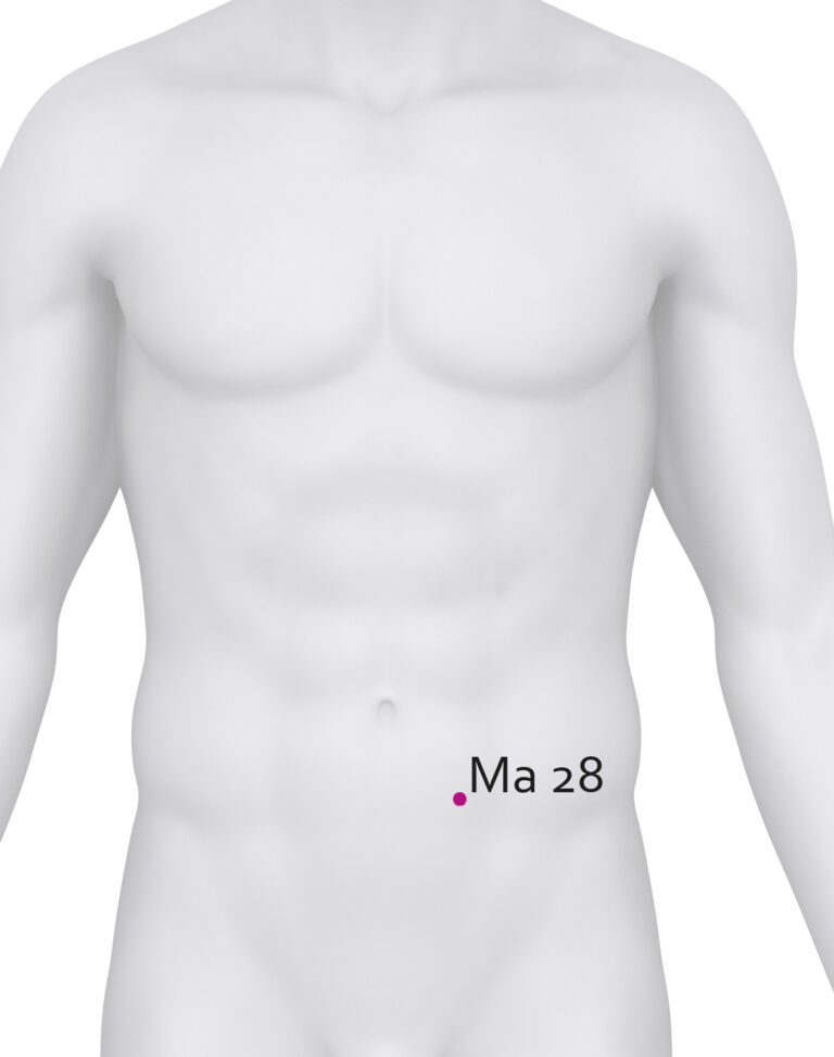 Hier finden Sie den Akupunkturpunkt Magen 28 (Ma 28).